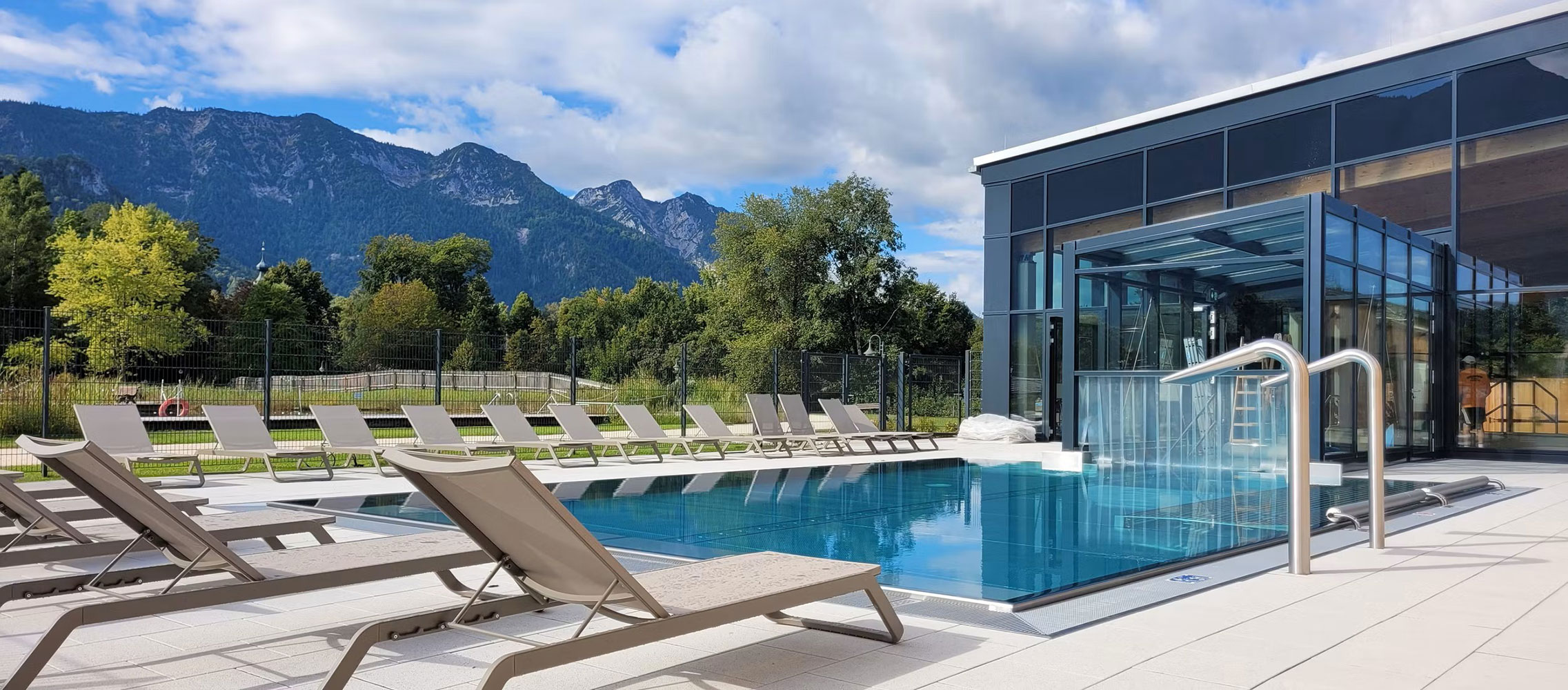 Tauchen Sie ein in das Hallenbad Inzell mit Schwimmbecken, Außenbecken, Kleinkinderbecken und Dampfsauna.